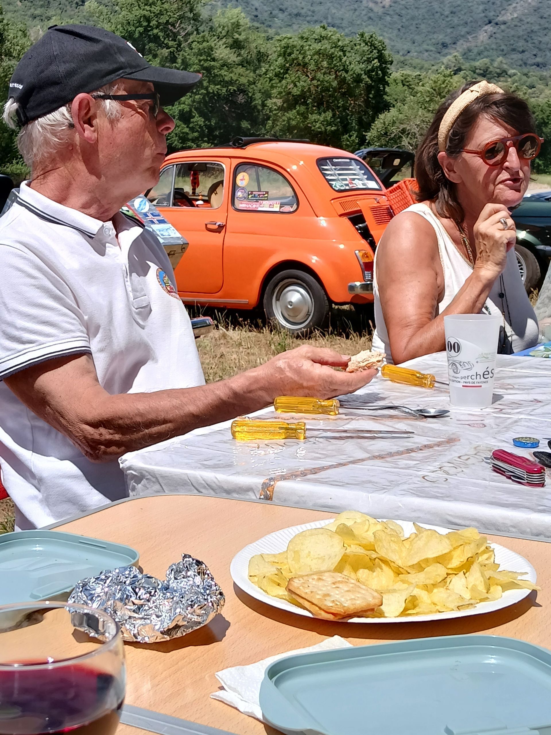 Un retour en empruntant les routes des crêtes de l'arrière pays de Bormes-Les-Mimosas, avec une collation (une innovation, merci Jérôme), puis une fuite d'huile sur un raccord de radiateur d'huile et réparée sur place (merci Didier) !