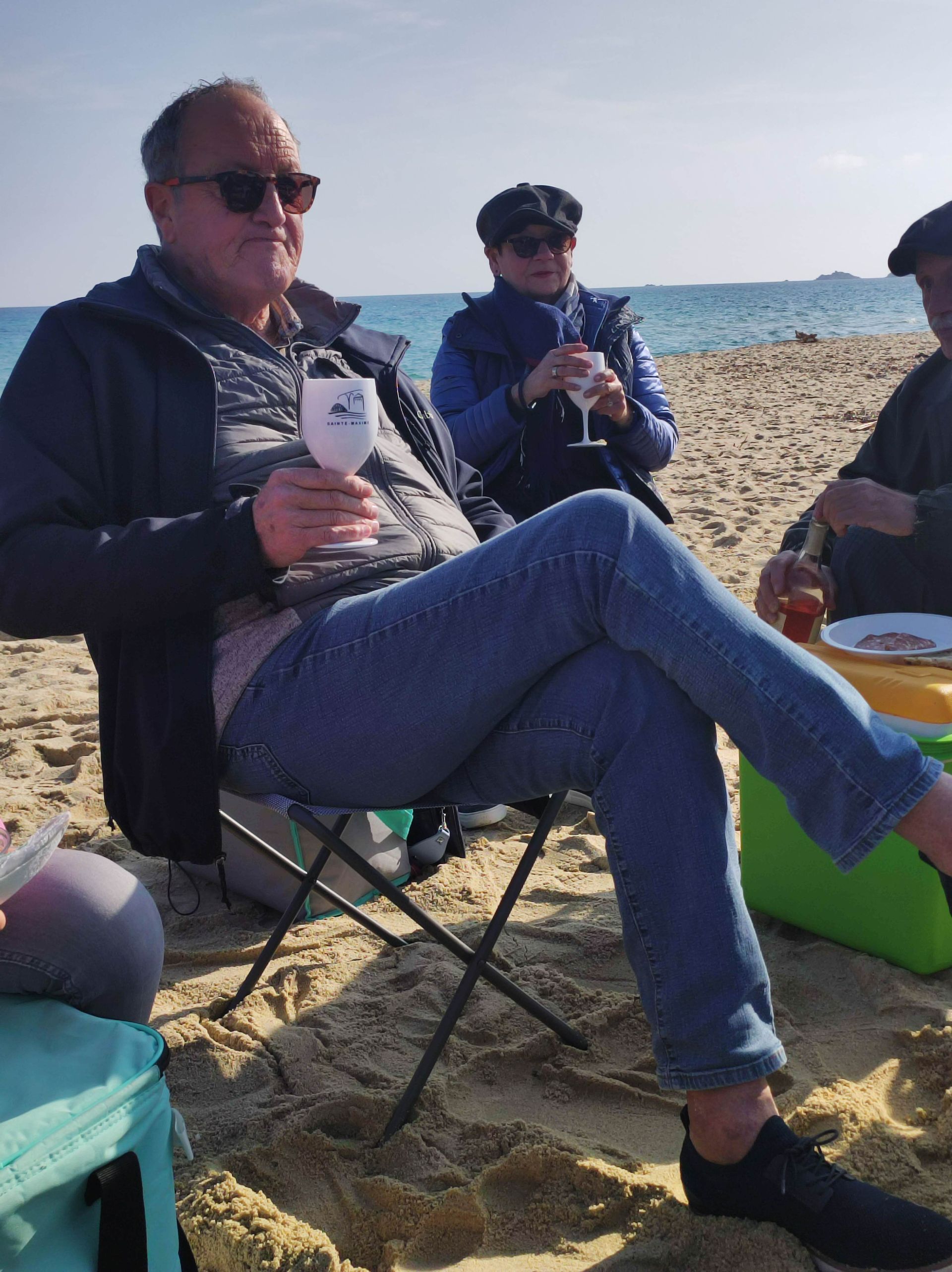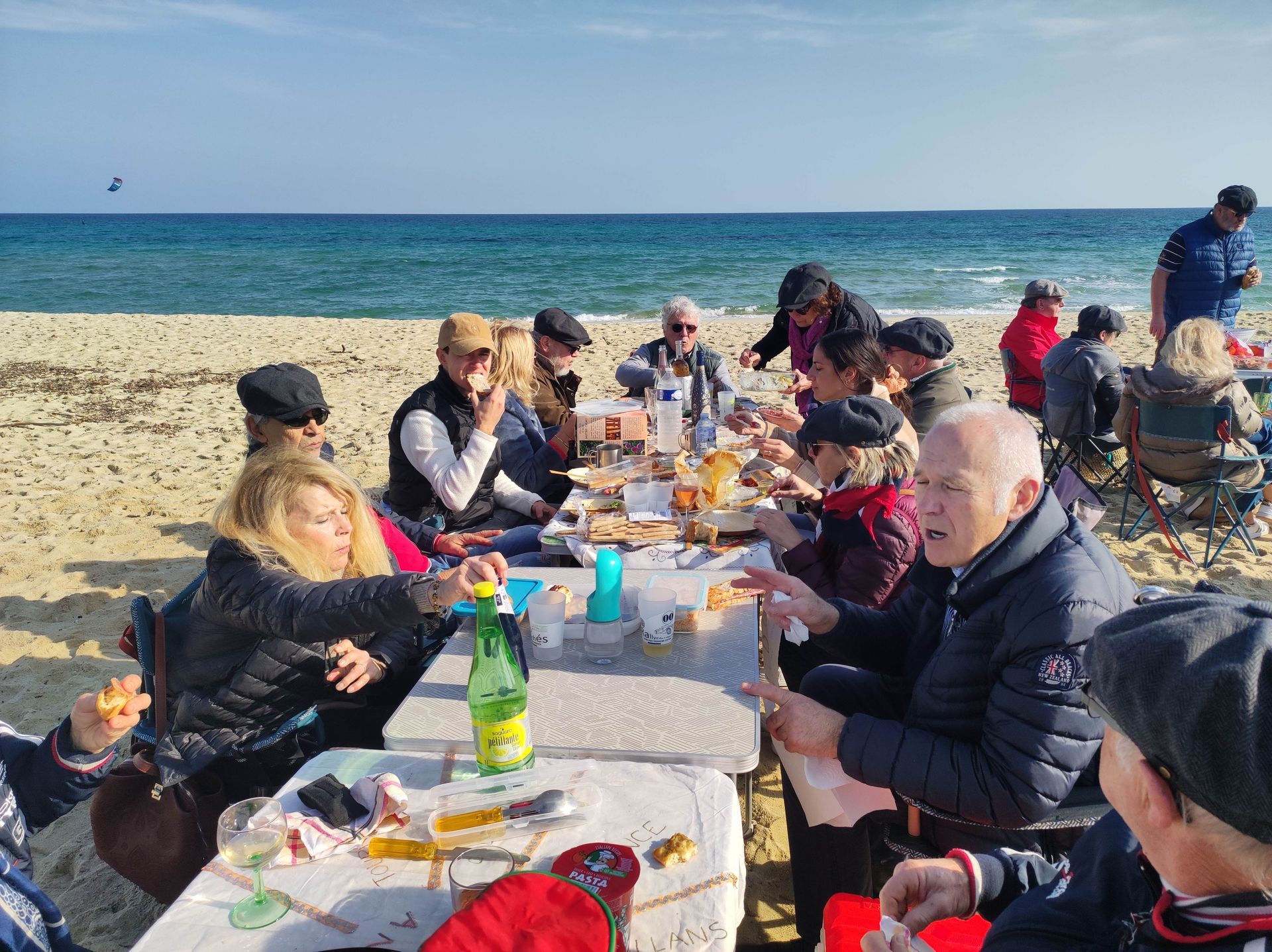 Nous nous sommes ensuite dirigés vers la plage de Pampelonne pour un pique-nique sur la plage. Nombre avaient apporté leur boisson préférée qu’ils nous ont fait tester. D'autres nous ont prouvé leur talent culinaire. Le club, par son président ragaillardi devant le nombre de candidats au voyage dans le Berry, nous a régalés avec le reliquat du buffet faisant suite à l’AG de la veille.